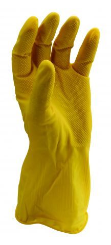 - Természetes latex mártás- Bolyhos pamutbélés- Érdesített tenyér és ujjak- Szín: sárga