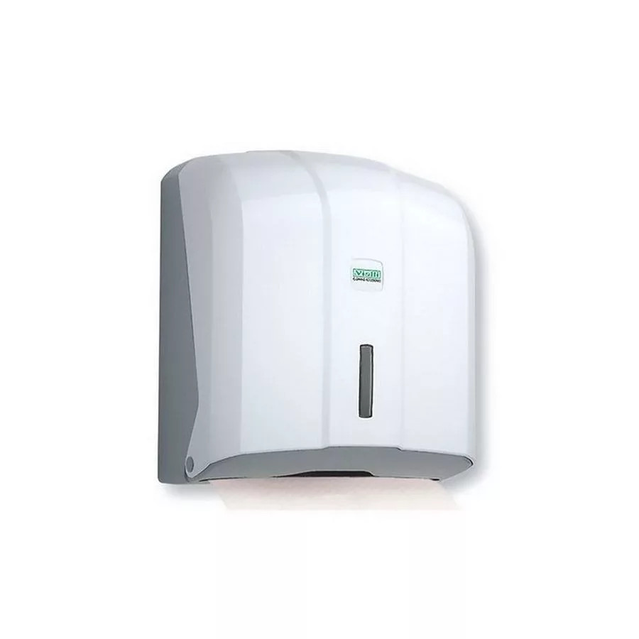 - V hajtogatott kéztörlő papír adagoló K4- ABS műanyag- ablakos- zárható- fehér- 270 (mag) x 270 (szél) x 130 (mély) mm- 10 db/karton