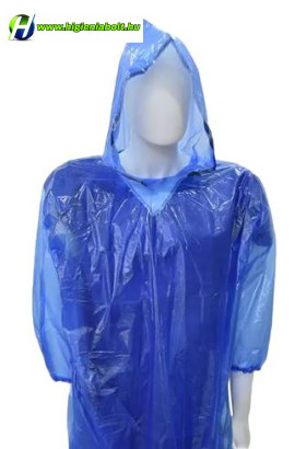 gyszeri használatra szánt polietilénből készült fólia esőkabát kapucnival. Védelmet nyújt eső és más folyadékok ellen.
